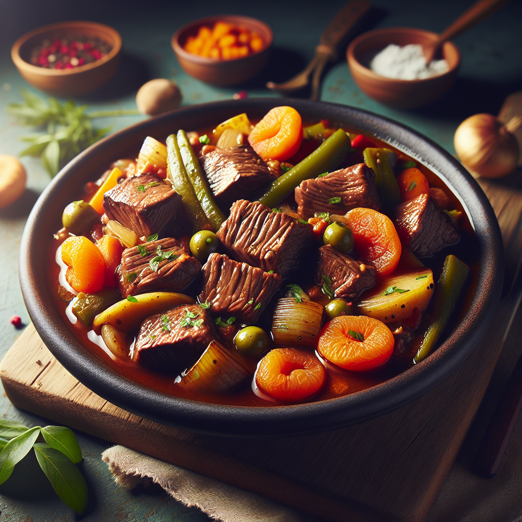 Carbonada CriollaA hearty Argentinian beef stew featuring tender meat, vegetables, and a hint of sweetness from dried apricots.