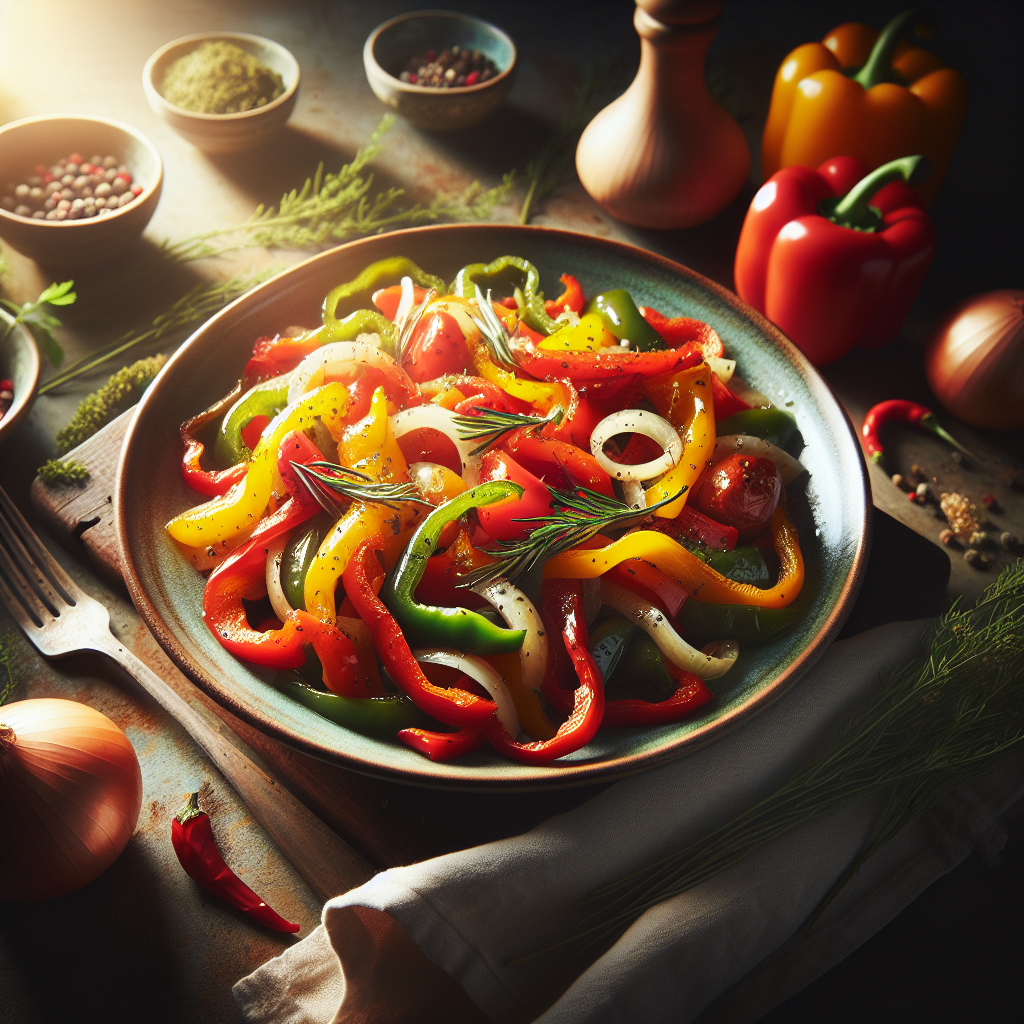 - Incorporate the garlic, salt, and pepper. Then stir in the chopped peppers and tomato. Cook for another 5 minutes, stirring occasionally, until the tomato is softened and the flavors meld together.