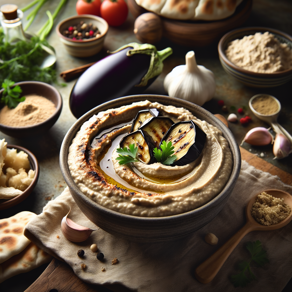 - In a mixing bowl, combine the drained eggplant flesh with crushed garlic and kosher salt, mashing until creamy but still slightly textured, about 5 minutes.