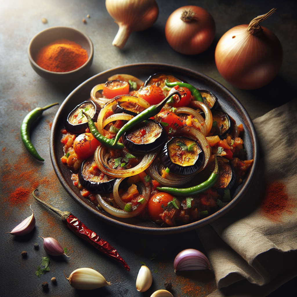- Incorporate the chopped eggplant into the onion-tomato mixture.