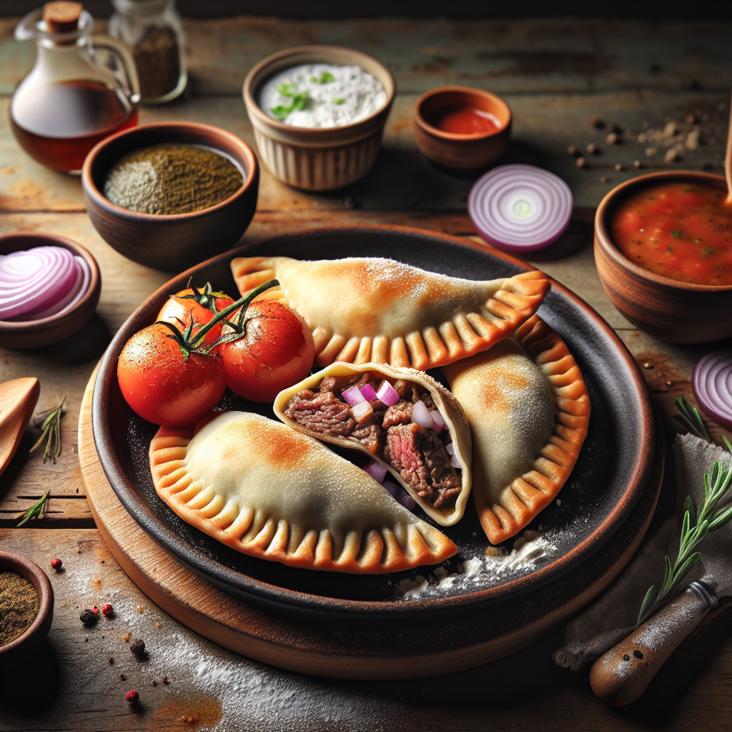 - Preheat the oven to 200°C (392°F). Brush the empanadas with egg wash and bake on a lined baking sheet for about 25 minutes or until golden. Serve warm with a drizzle of chimichurri sauce.