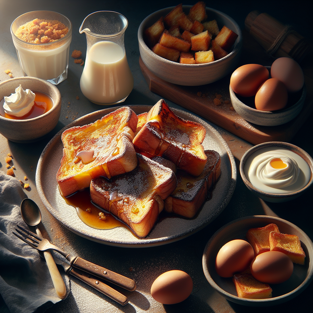 - Place the coated bread on the skillet and cook until golden brown on both sides.