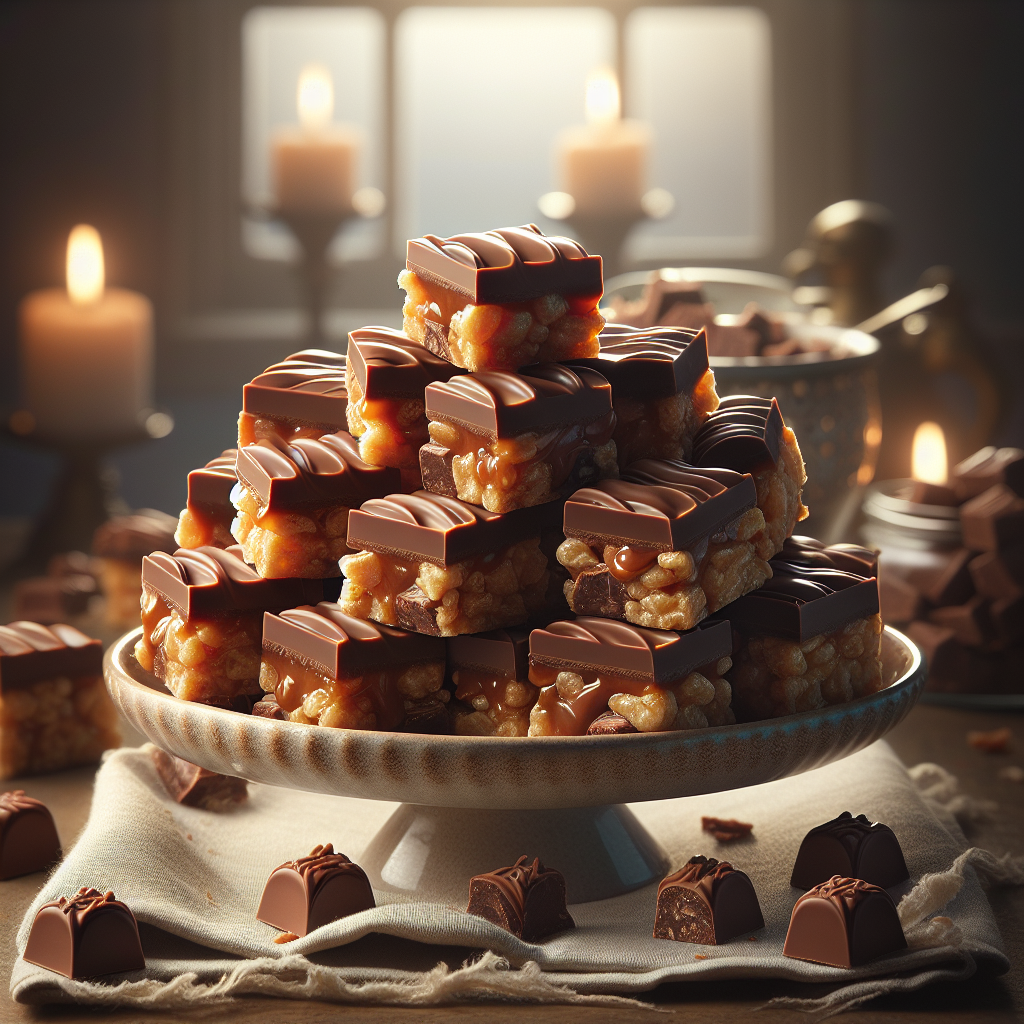 - Spread the melted chocolate over the rice krispie layer and let it cool in a cool place until set. Once firm, cut into squares and serve!