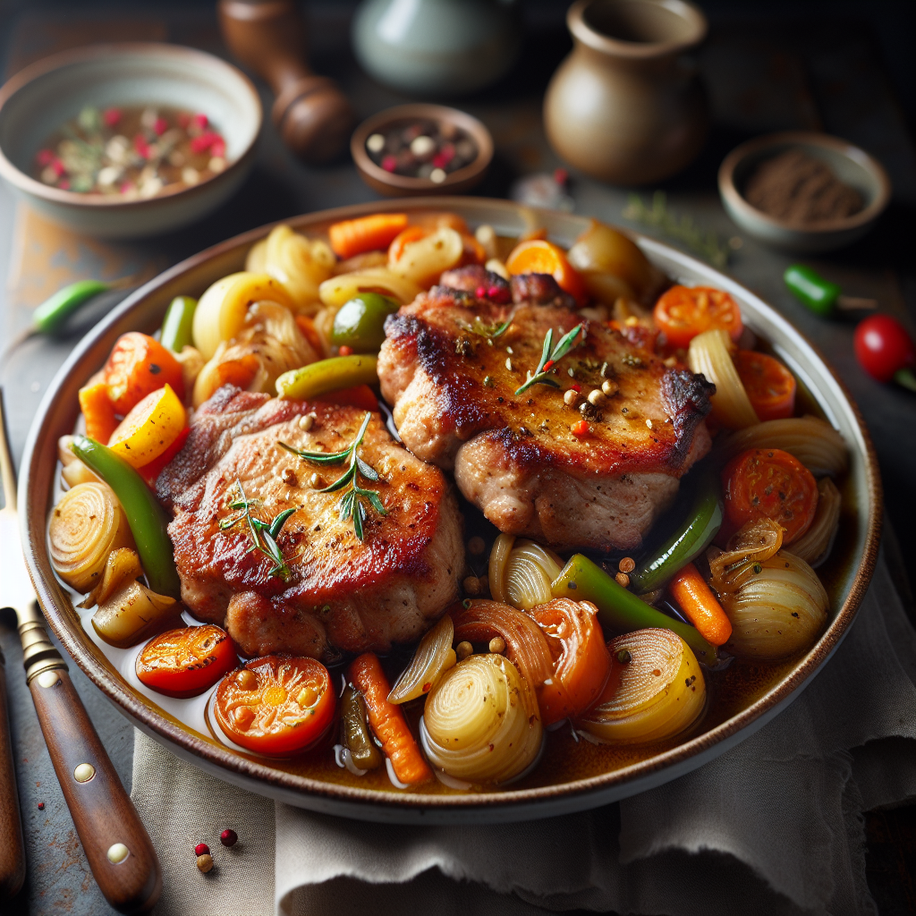 - In the same pan, add bacon, carrot, potatoes, and swede. Sauté gently until they start to color. Then add cabbage, place the pork chops back on top, and incorporate the bay leaf. Pour in cider and chicken stock. Cover the dish and let it simmer for about 20 minutes until the pork is fully cooked and the vegetables are tender.