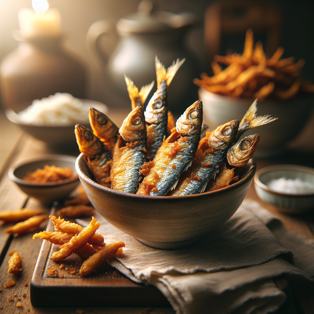 - Heat a dash of vegetable oil in a frying pan and deep fry the sardines until they are golden and crispy.