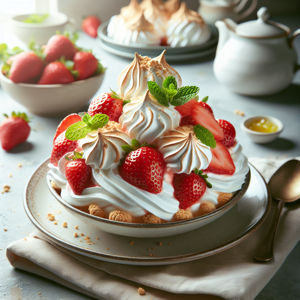 - Gently fold in the strawberry purée and crumbled meringue into the whipped cream.