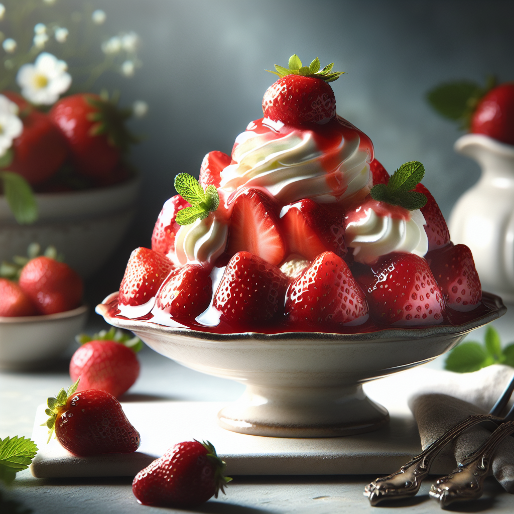- Top with the reserved strawberries and a sprig of mint for garnish before serving.