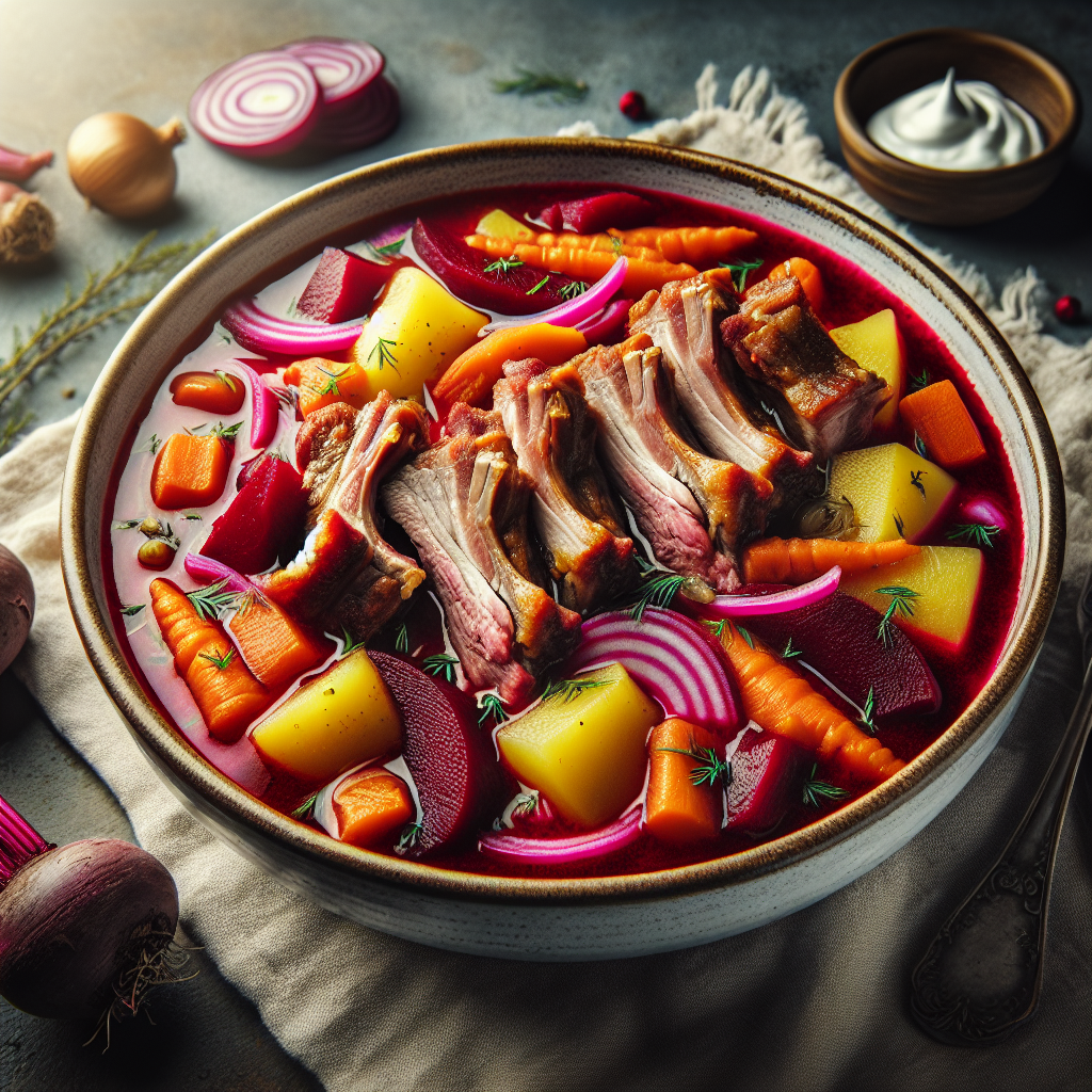 Incorporate the Beetroot and cook for 10 minutes before adding the Potatoes. After another 15 minutes, mix in the Tomato Puree to taste and any canned beans. Bring to a boil once more, then add the White Cabbage and cook for another 5 minutes. Season to taste, then garnish with Parsley and Dill. Turn off the heat and let the borscht rest for 5 minutes before serving with Sour Cream on the side.