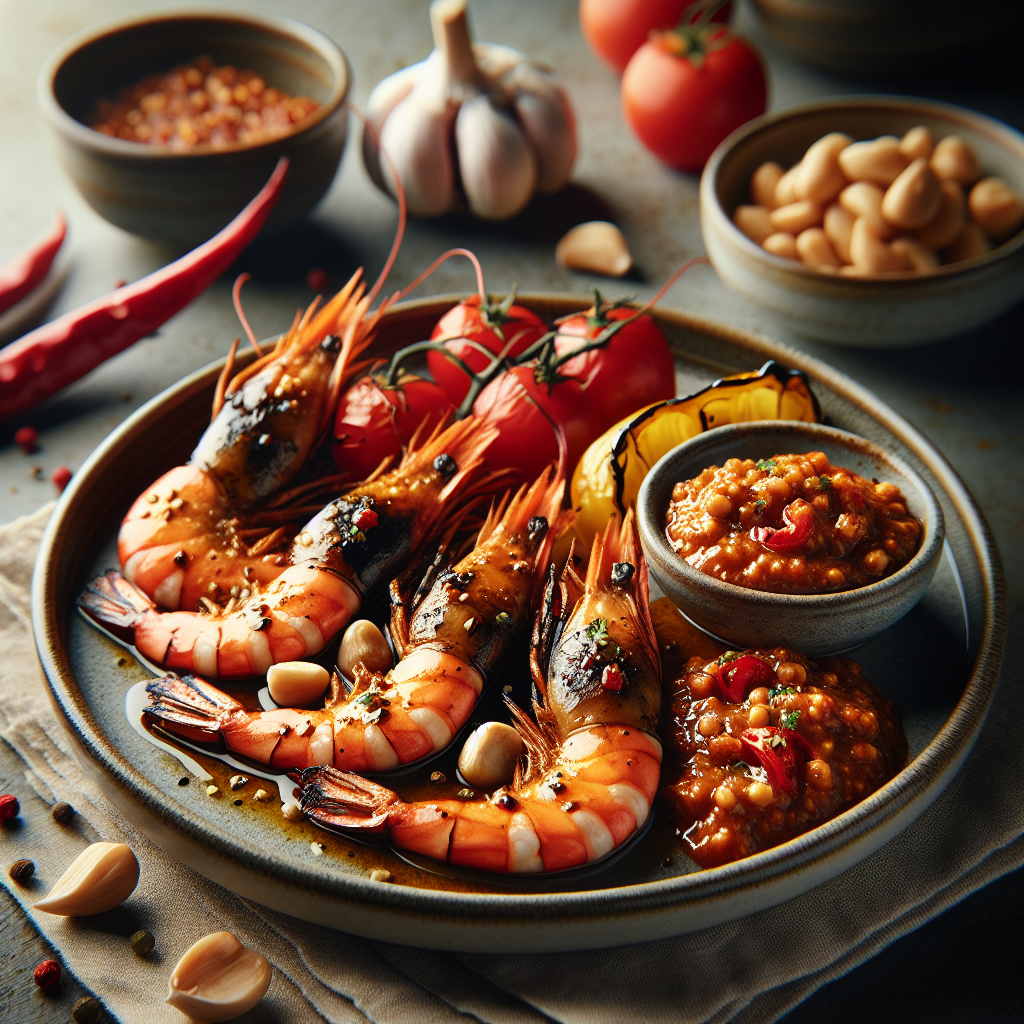- Serve the dish: On the day of serving, mix in the toasted nuts and chopped parsley to the sauce. Present the sauce in a small bowl on a plate alongside the peeled tiger prawns. Provide cocktail sticks for easy eating.