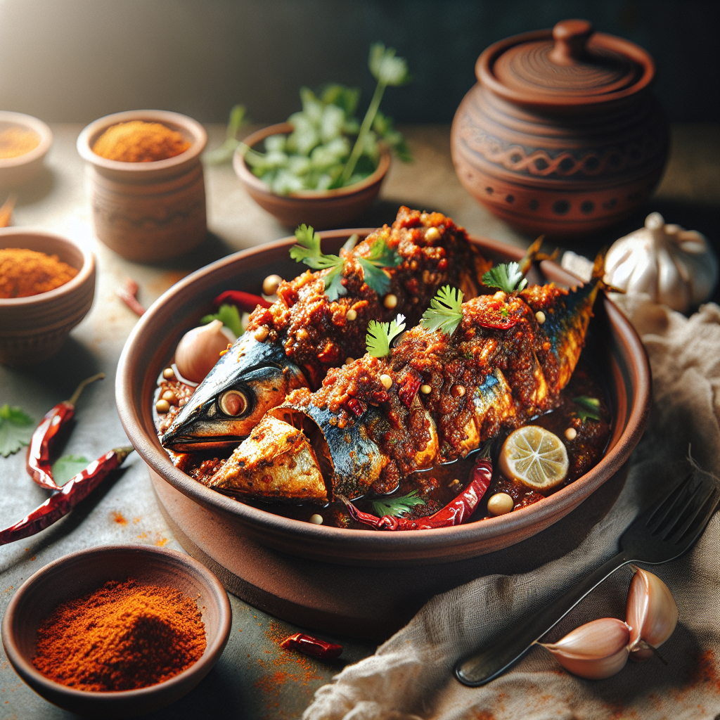 - In a bowl, soak red chilies, ginger, garlic, tamarind pulp, and spices (except oil) in vinegar.