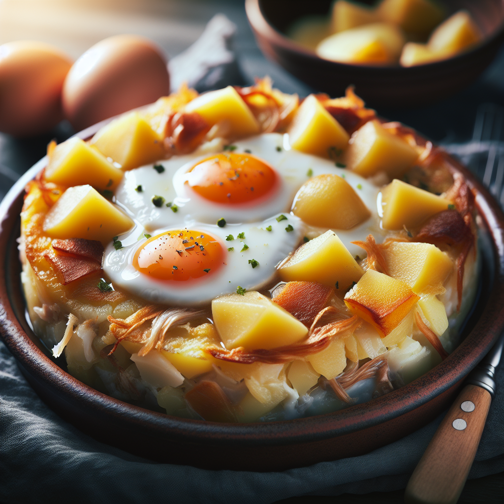 - Meanwhile, place 300g salt cod in a saucepan and cover it with water. Bring to a simmer, then remove from heat, cover, and let it sit for 10 minutes. Drain, cool, and remove the skin and any bones. Flake the cod into large pieces and mix it into the potato and egg mixture.