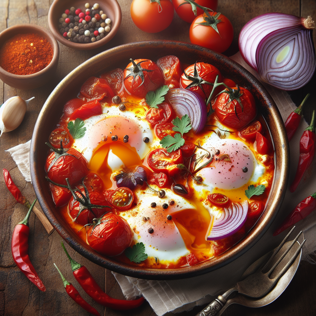 - Using the back of a spoon, create 4 wells in the sauce and crack 4 eggs into each well.