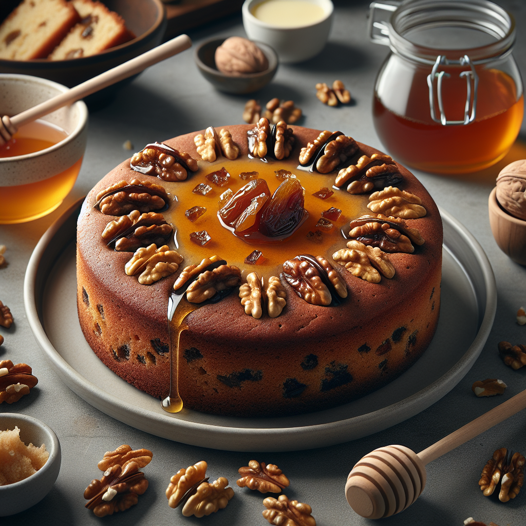 - Pour the batter into the prepared tin and smooth the top. Sprinkle 50g of walnuts evenly over the surface. Bake for 1 hour, then gently press the top – it should feel firm if done. If not, continue baking for an additional 10 minutes.